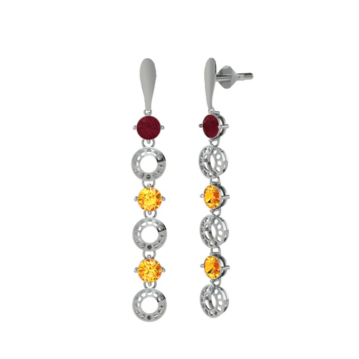 Kök yakut ve sitrin 8 ayar beyaz altın küpe