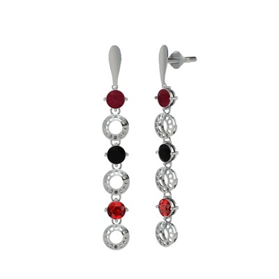 Kök yakut, siyah zirkon ve garnet 8 ayar beyaz altın küpe