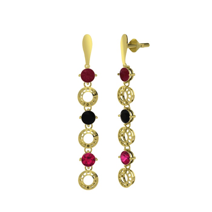 Kök yakut, siyah zirkon ve rodolit garnet 925 ayar altın kaplama gümüş küpe