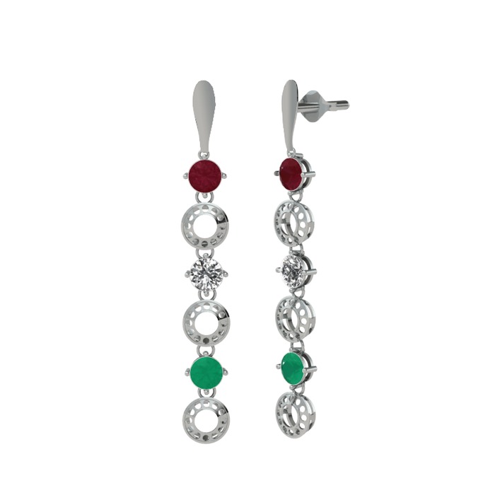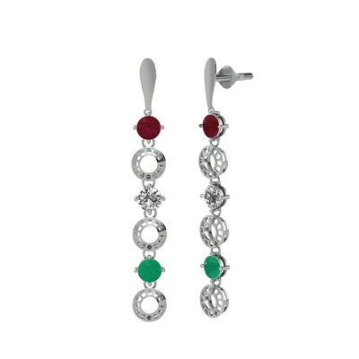 Kök yakut, swarovski ve kök zümrüt 925 ayar gümüş küpe
