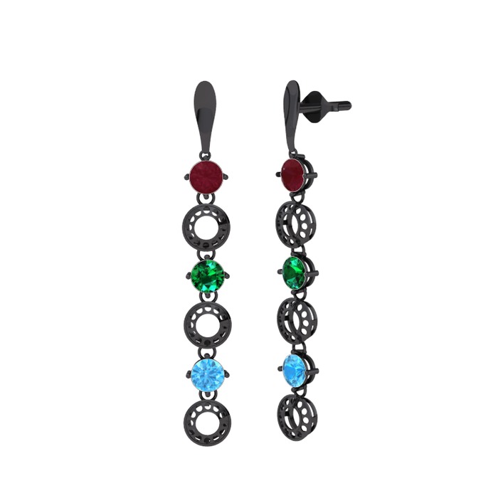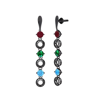 Kök yakut, yeşil kuvars ve akuamarin 925 ayar siyah rodyum kaplama gümüş küpe