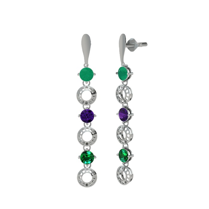 Kök zümrüt, ametist ve yeşil kuvars 925 ayar gümüş küpe