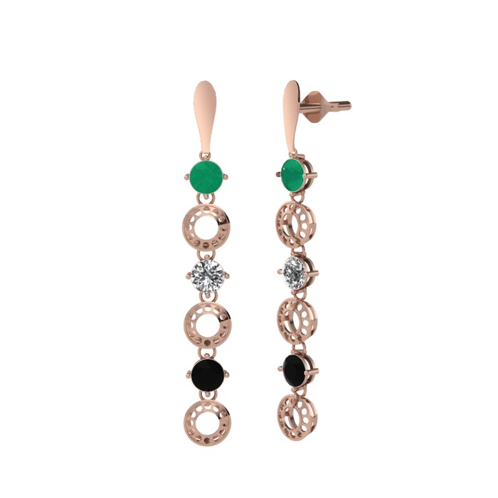 Kök zümrüt, beyaz zirkon ve siyah zirkon 925 ayar rose altın kaplama gümüş küpe