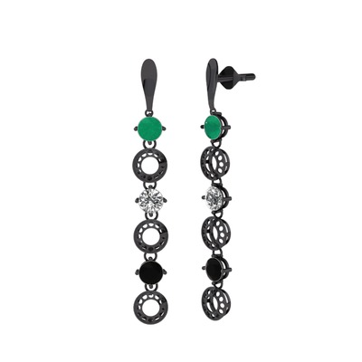 Kök zümrüt, beyaz zirkon ve siyah zirkon 925 ayar siyah rodyum kaplama gümüş küpe
