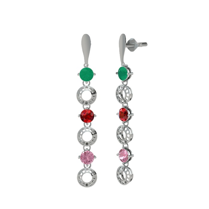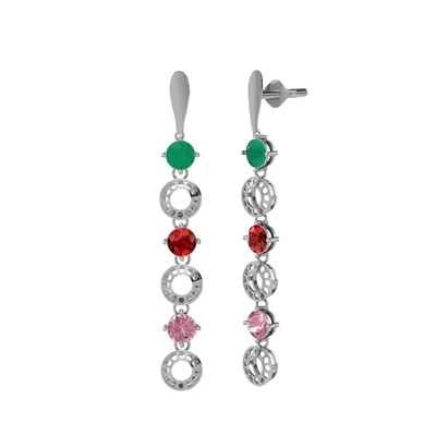 Kök zümrüt, garnet ve pembe kuvars 925 ayar gümüş küpe