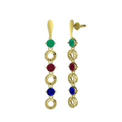 Kök zümrüt, kök yakut ve lab safir 8 ayar altın küpe