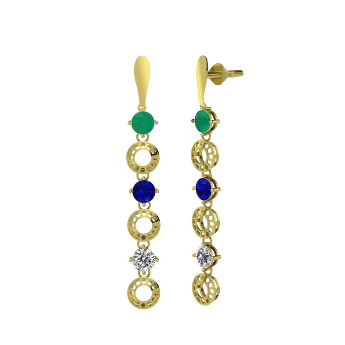 Kök zümrüt, lab safir ve swarovski 18 ayar altın küpe