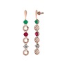 Kök zümrüt, rodolit garnet ve beyaz zirkon 18 ayar rose altın küpe