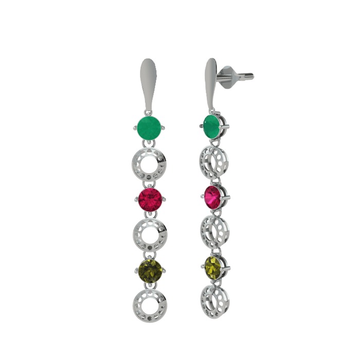 Kök zümrüt, rodolit garnet ve peridot 18 ayar beyaz altın küpe