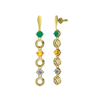 Kök zümrüt, sitrin ve beyaz zirkon 18 ayar altın küpe