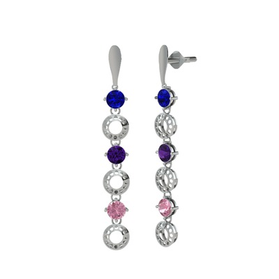 Lab safir, ametist ve pembe kuvars 925 ayar gümüş küpe