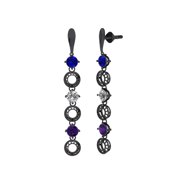 Lab safir, beyaz zirkon ve ametist 925 ayar siyah rodyum kaplama gümüş küpe