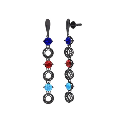 Lab safir, garnet ve akuamarin 925 ayar siyah rodyum kaplama gümüş küpe