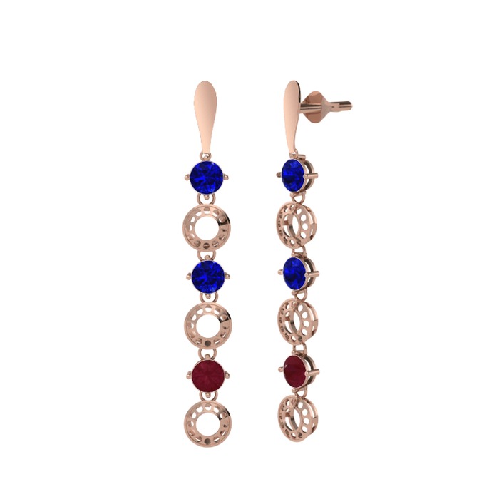 Lab safir ve kök yakut 18 ayar rose altın küpe