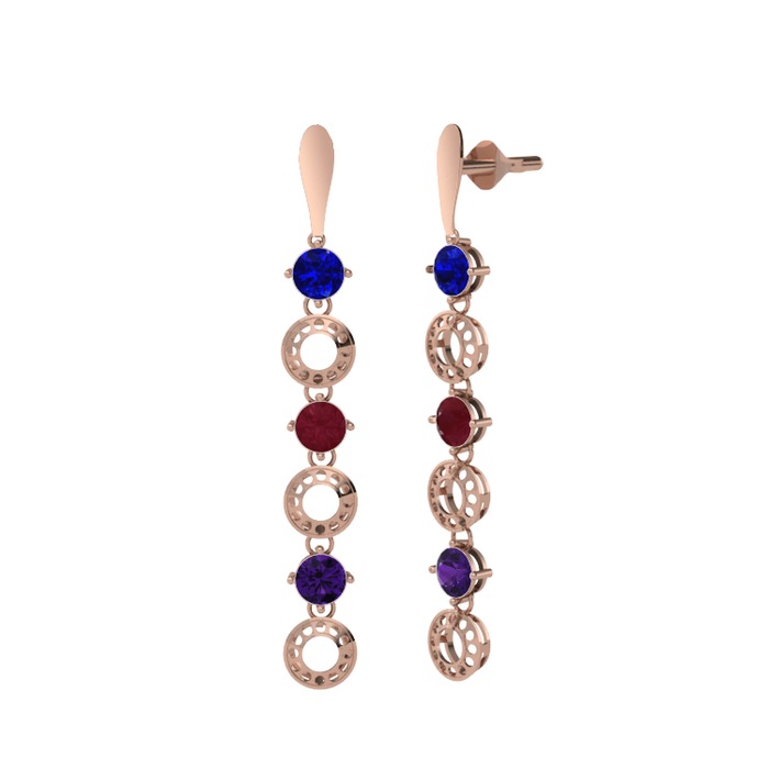 Lab safir, kök yakut ve ametist 18 ayar rose altın küpe