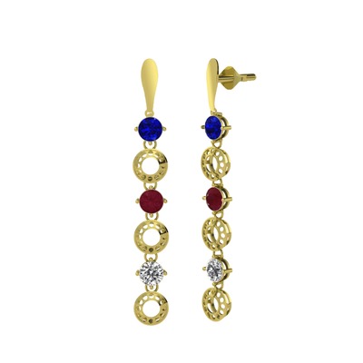 Lab safir, kök yakut ve swarovski 14 ayar altın küpe