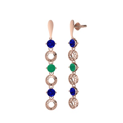 Lab safir ve kök zümrüt 14 ayar rose altın küpe
