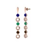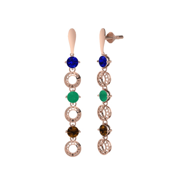 Lab safir, kök zümrüt ve dumanlı kuvars 8 ayar rose altın küpe