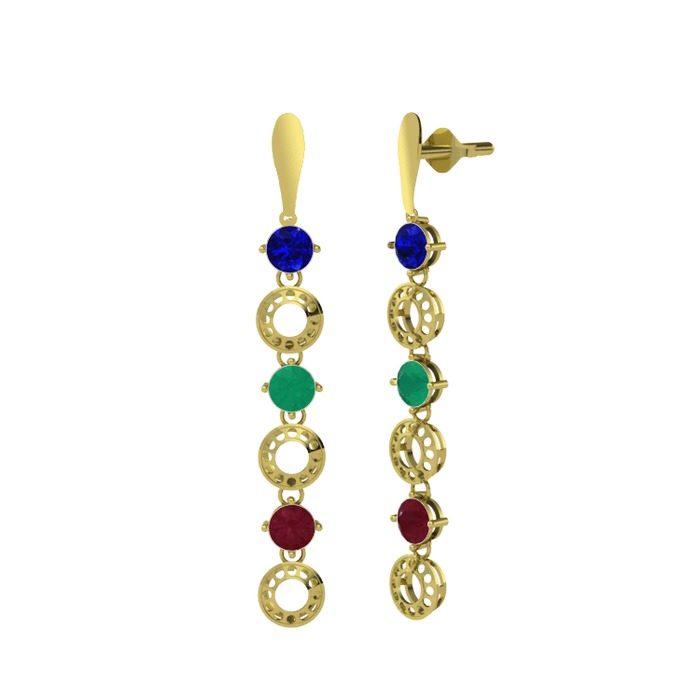 Lab safir, kök zümrüt ve kök yakut 925 ayar altın kaplama gümüş küpe