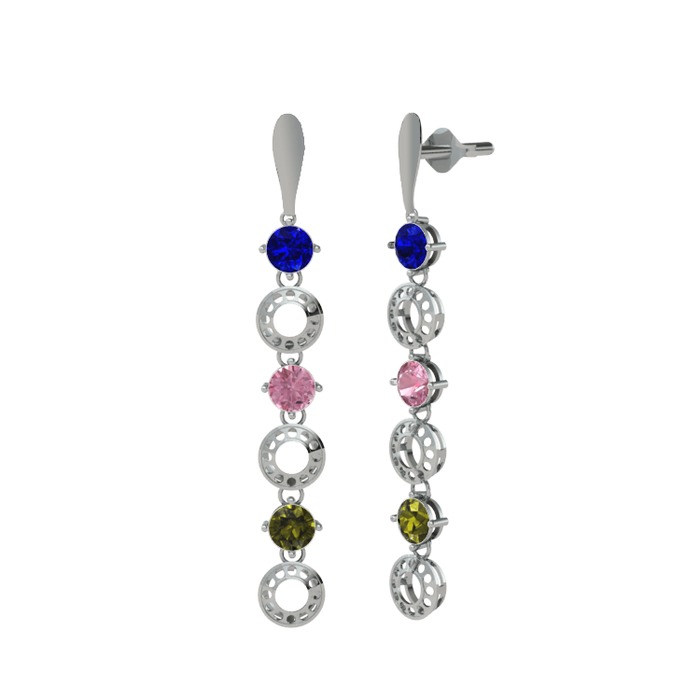 Lab safir, pembe kuvars ve peridot 925 ayar gümüş küpe