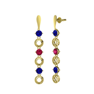 Lab safir ve rodolit garnet 925 ayar altın kaplama gümüş küpe