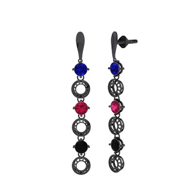 Lab safir, rodolit garnet ve siyah zirkon 925 ayar siyah rodyum kaplama gümüş küpe