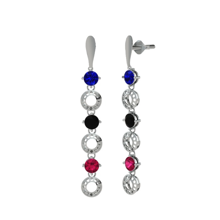 Lab safir, siyah zirkon ve rodolit garnet 18 ayar beyaz altın küpe