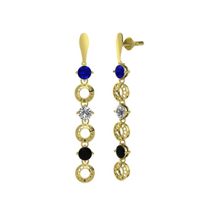 Lab safir, swarovski ve siyah zirkon 14 ayar altın küpe