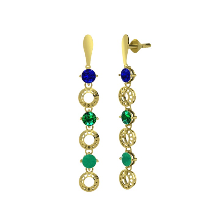 Lab safir, yeşil kuvars ve kök zümrüt 18 ayar altın küpe