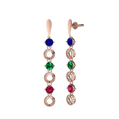 Lab safir, yeşil kuvars ve rodolit garnet 14 ayar rose altın küpe