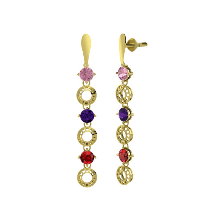 Pembe kuvars, ametist ve garnet 8 ayar altın küpe