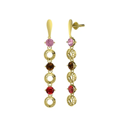 Pembe kuvars, dumanlı kuvars ve garnet 925 ayar altın kaplama gümüş küpe