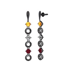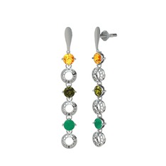 Pembe kuvars, kök yakut ve akuamarin 14 ayar altın küpe