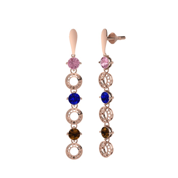 Pembe kuvars, lab safir ve dumanlı kuvars 8 ayar rose altın küpe