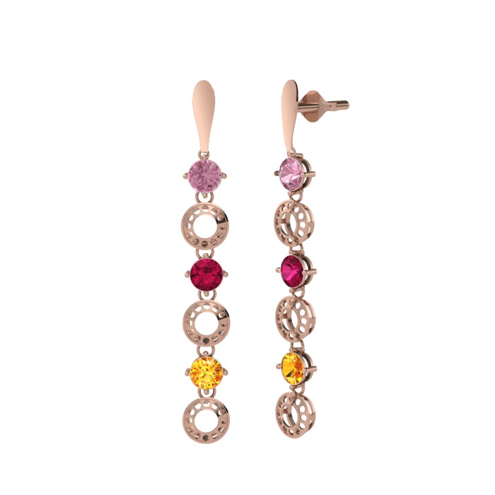 Pembe kuvars, rodolit garnet ve sitrin 8 ayar rose altın küpe