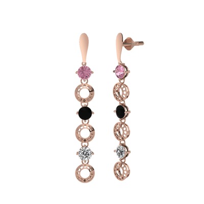 Pembe kuvars, siyah zirkon ve swarovski 925 ayar rose altın kaplama gümüş küpe