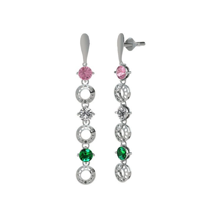 Pembe kuvars, swarovski ve yeşil kuvars 8 ayar beyaz altın küpe