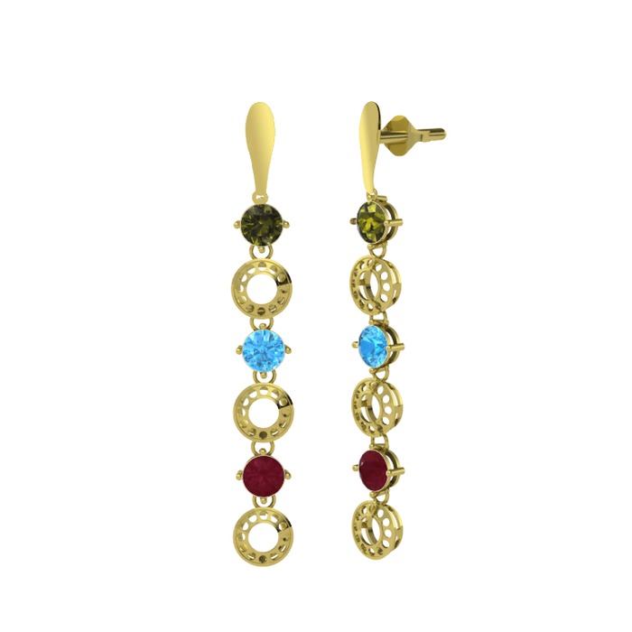 Peridot, akuamarin ve kök yakut 8 ayar altın küpe