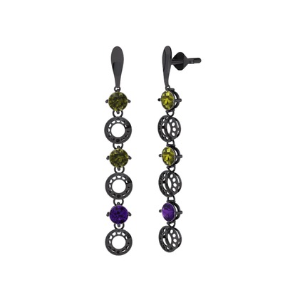 Peridot ve ametist 925 ayar siyah rodyum kaplama gümüş küpe
