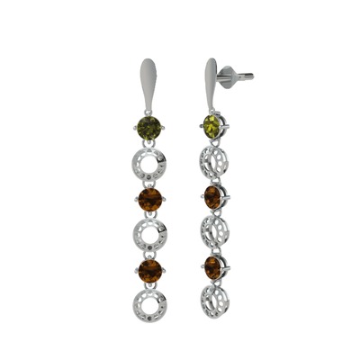 Peridot ve dumanlı kuvars 925 ayar gümüş küpe