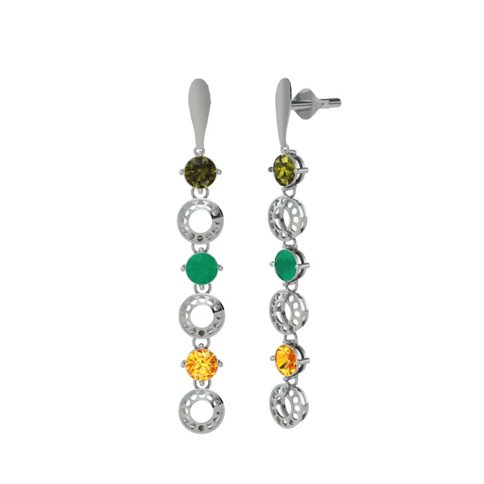 Peridot, kök zümrüt ve sitrin 14 ayar beyaz altın küpe