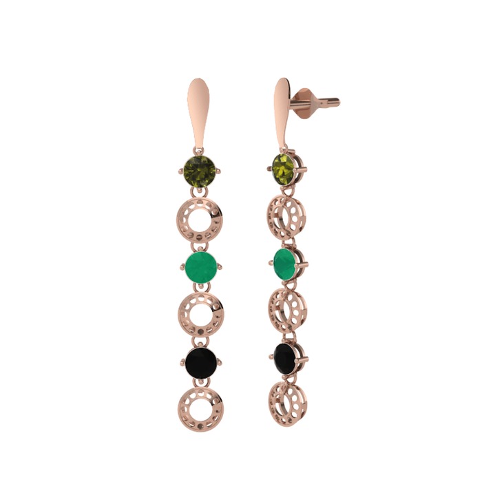 Peridot, kök zümrüt ve siyah zirkon 925 ayar rose altın kaplama gümüş küpe