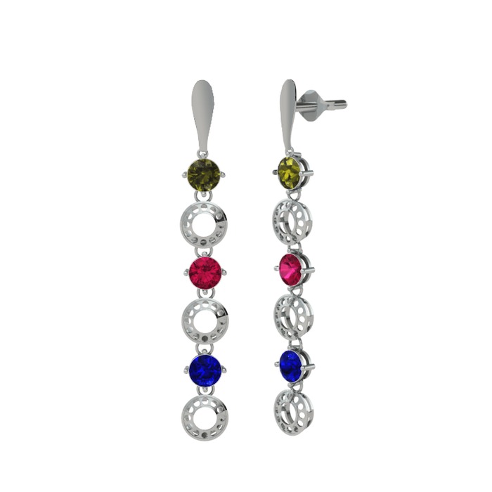 Peridot, rodolit garnet ve lab safir 14 ayar beyaz altın küpe