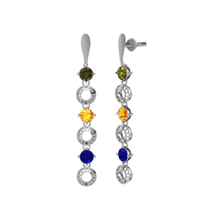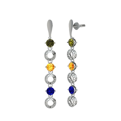 Peridot, sitrin ve lab safir 14 ayar beyaz altın küpe