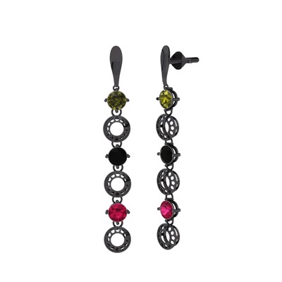 Peridot, siyah zirkon ve rodolit garnet 925 ayar siyah rodyum kaplama gümüş küpe