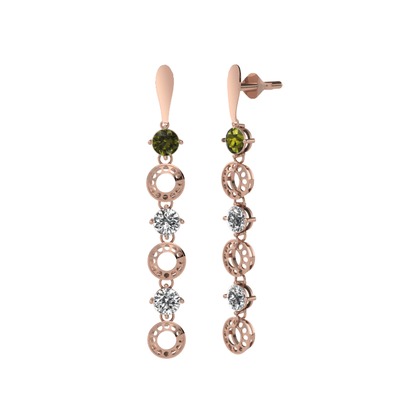 Peridot, swarovski ve beyaz zirkon 8 ayar rose altın küpe
