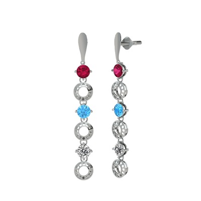 Rodolit garnet, akuamarin ve swarovski 14 ayar beyaz altın küpe