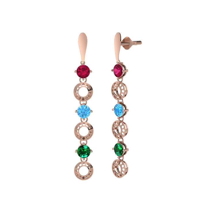 Rodolit garnet, akuamarin ve yeşil kuvars 8 ayar rose altın küpe