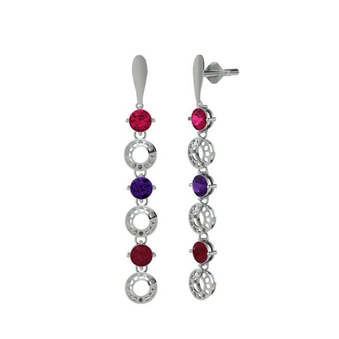 Rodolit garnet, ametist ve kök yakut 925 ayar gümüş küpe