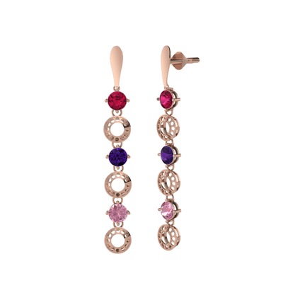 Rodolit garnet, ametist ve pembe kuvars 925 ayar rose altın kaplama gümüş küpe